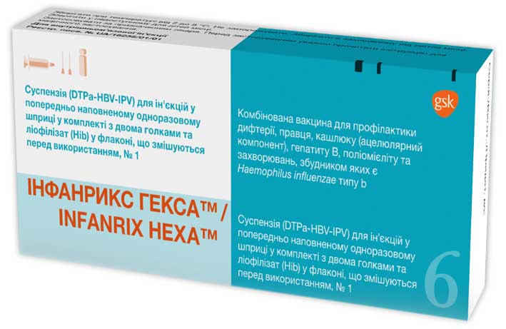 Інфанрикс Гекса – це сучасна вакцина комбінованої дії, яка призначена для профілактики шести поширених інфекційних захворювань. Вона захищає організм дитини від дифтерії, правця, кашлюку, гепатиту В, поліомієліту та захворювань, що викликаються патогенною бактерією Haemophilus Influenzae тип b. Вакцинація проводиться дітям у віці від шістьдесяти днів до п’яти років.